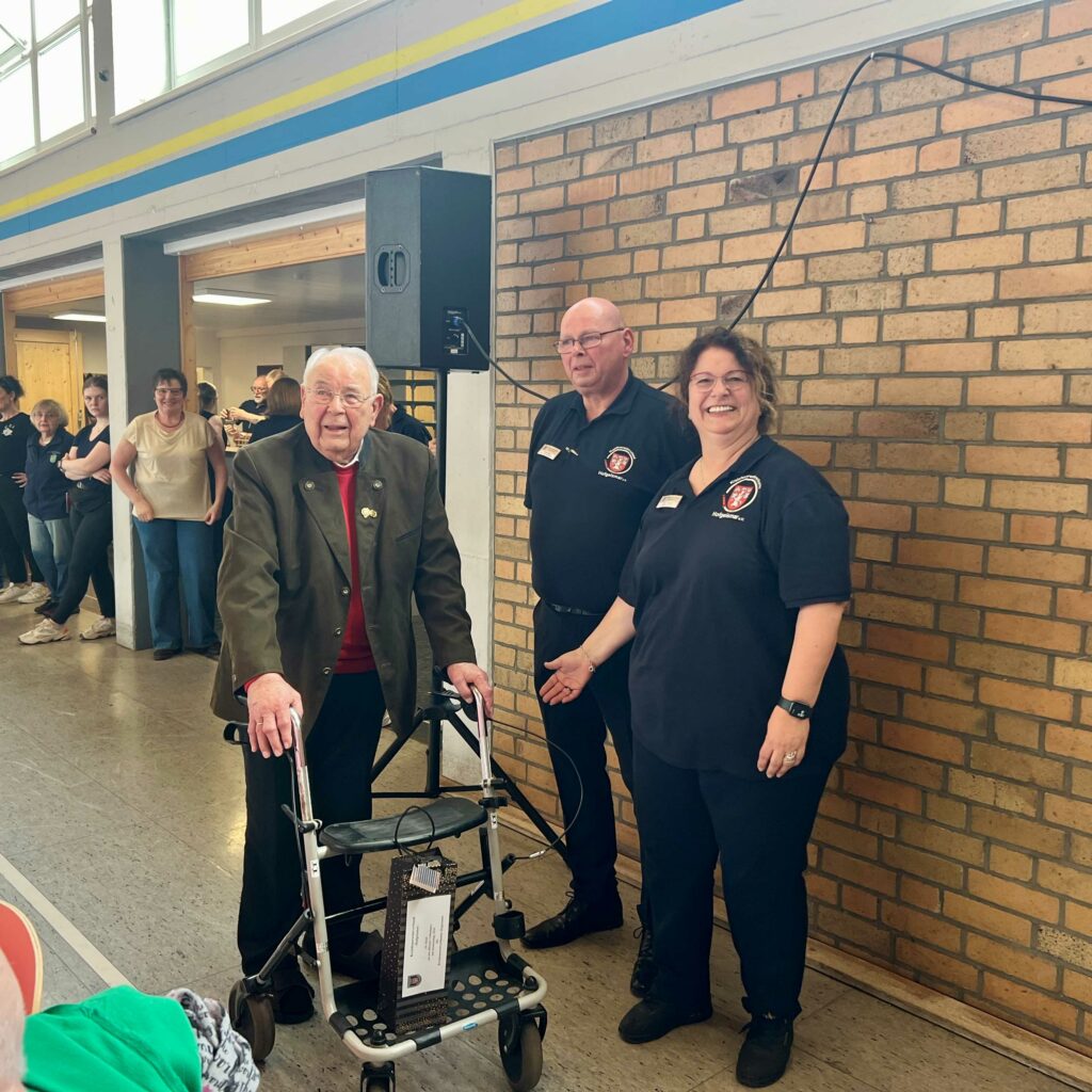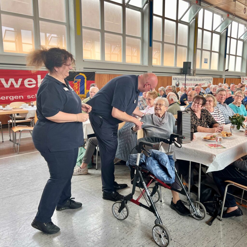 Samstagnachmittag, die Mehrzweckhalle in Calden füllt sich erneut. Über 300 Seniorinnen und Senioren sind der Einladung zum Seniorennachmittag des Kreisfeuerwehrverbands gefolgt. Bei Kaffee und leckerem Kuchen wurde sich die ein oder andere alte Geschichte erzählt. Für den gewissen Schwung zwischendurch sorgten die Kindertanzgruppen Show-Kids von Carnevals-Club-Calden CCC und die Mini-Konfettis der Karnevalsgruppe der Katholischen Kirche KKK aus Immenhausen. Auch die Kapelle Brumm brachte mit ihren Liedern die Besucher zum Klatschen und Mitsingen. Bevor sich der Nachmittag aber dem Ende neigte, ist es seit langer Zeit schon Tradition, dass die beiden ältesten Gäste ein kleines Dankeschön seitens des Kreisfeuerwehrverbands erhalten. Bei den Damen war es Gisela Zeller aus Hombressen und bei den Herren August Salzmann aus Calden. Er ist bereits seit 84 Jahren Mitglied in der Feuerwehr und bedankte sich mit einer ergreifenden Rede.